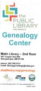 On Saturday, April 18, 2026, the Genealogy Center at the Albuquerque Main Library (Downtown) will host the presentation “Genizaros: Indian Captivity in Spanish, Mexican and Early Territorial New Mexico.” From 10:30 am to noon, researcher, author, and former New Mexico State Historian, Robert J. Torrez, will review the Spanish policy of the rescate, officially sanctioned trade opportunities that enabled and encouraged the purchase or ransom of Indian captives and their incorporation into Hispanic society. Subsequent generations of these Indian captives became known as genizaros, Hispanicized Christian Indians that established their own communities and served as stalwart defenders of an embattled New Mexico frontier. Torrez will discuss what the documents in our archival collections tell us about the lives and treatment of the genizaro, as well as how they were treated after the U.S. occupation of New Mexico in 1846. The Genealogy Center is located on the 2nd floor of the Albuquerque Main Library at 501 Copper Ave NW, Albuquerque, NM. There is parking available in the multi-level parking garage on the SE corner of 5th and Copper. Your parking receipt will be validated for two hours of free parking. For more information call (505) 768-5131 or email librarygenealogy@cabq.gov.